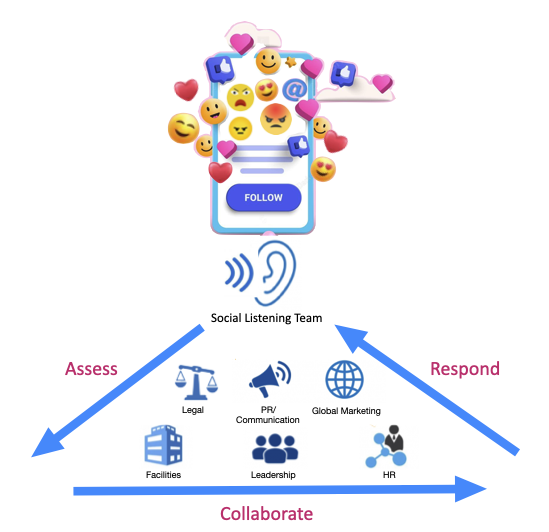 Developed workflows that seamlessly integrated with existing crisis response plans across the company, established listening alerts to notify the team of potential crisis surges, established Twilio SMS emergency notification integration with Sprinklr social listening tool, and trained the global organization on process and execution. Led ongoing crisis surge alert review and action evaluation.