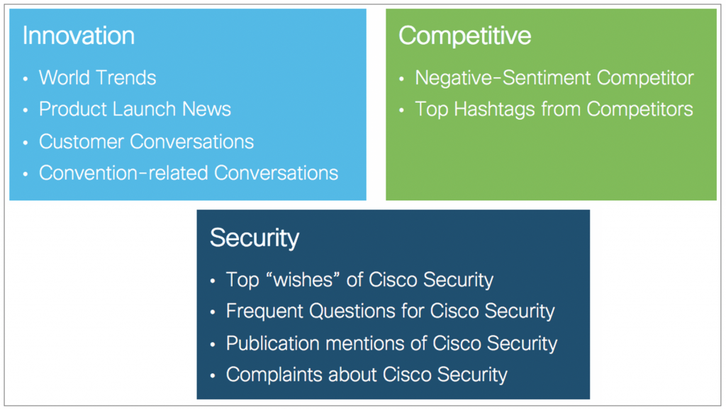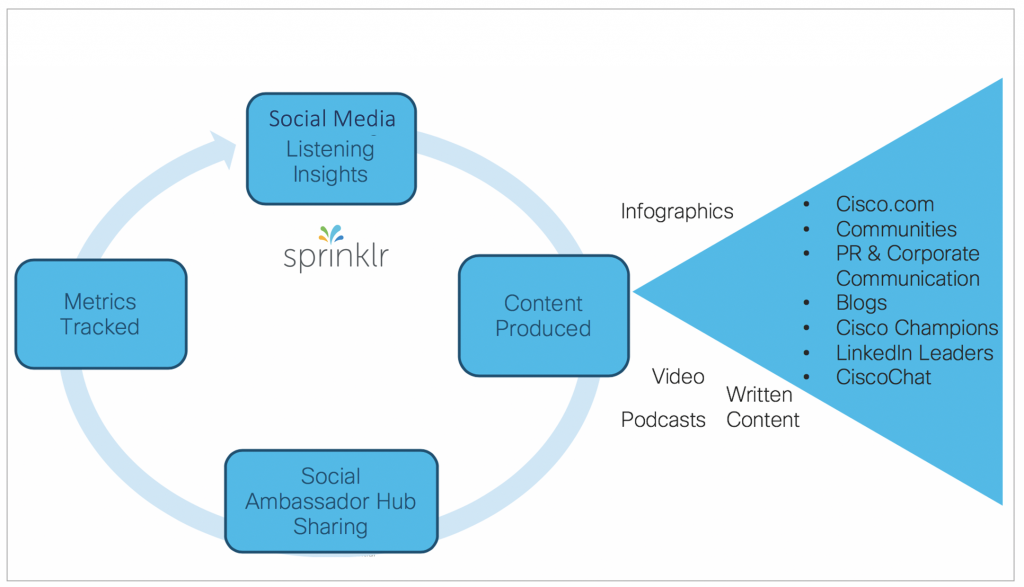 Utilize social listening to identify trending topics, user care-abouts, and opportunities for Cisco to create audience-responsive and engaging content.